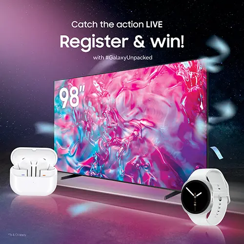 Watch Galaxy Unpacked live and stand a chance to win exciting Samsung prizes — including Galaxy wearables and accessories.